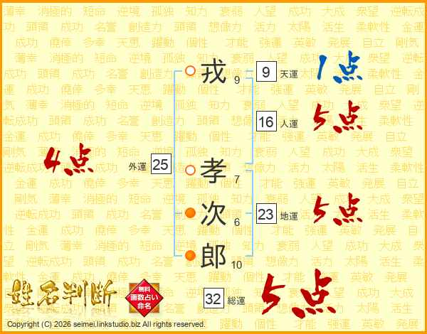 戎孝次郎さんの総運は32画の5点!