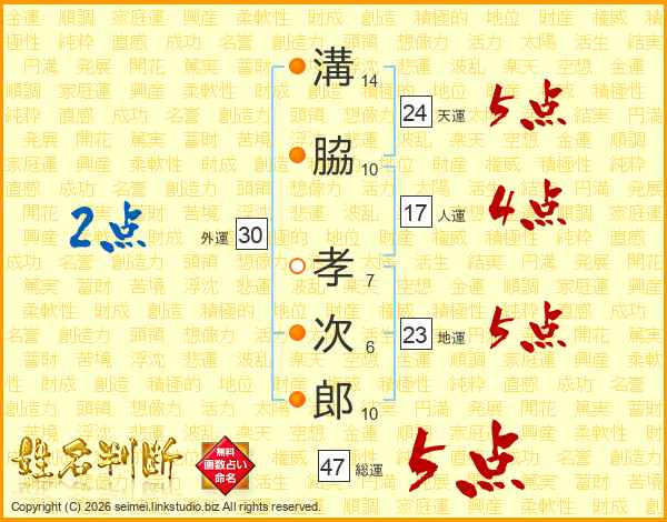 溝脇孝次郎さんの総運は47画の5点!