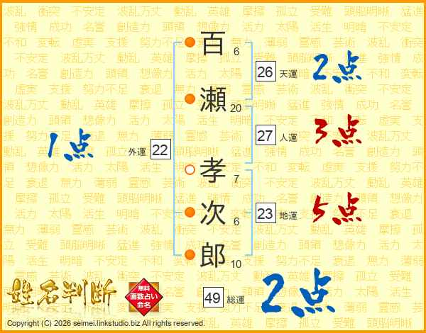 百瀬孝次郎さんの天運は26画の2点!