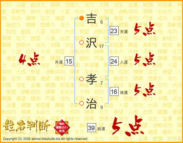 吉沢孝治さんの総運は39画の5点!