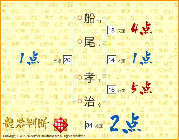 船尾孝治さんの天運は18画の4点!