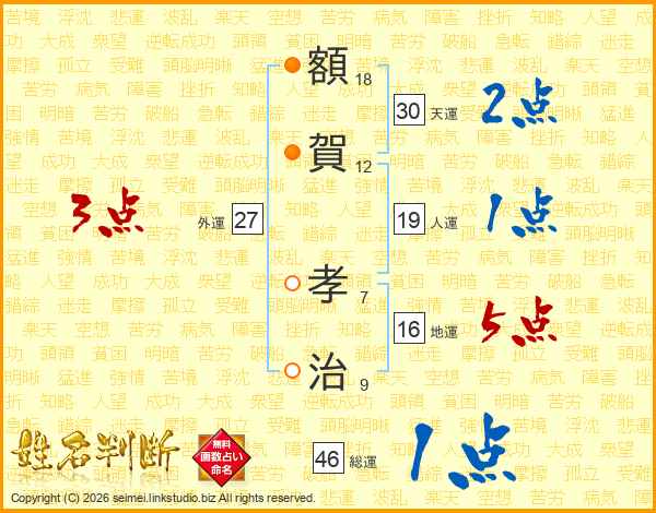 額(18画)賀(12画) 孝(7画)治(9画)