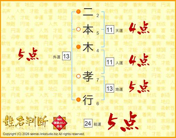 二(2画)本(5画)木(4画) 孝(7画)行(6画)