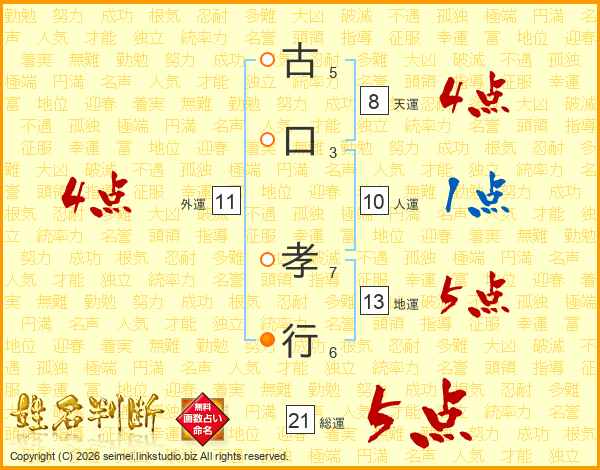 古口孝行さんの総運は21画の5点!