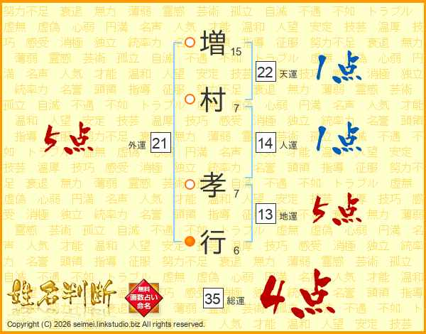 増村孝行さんの総運は35画の4点!