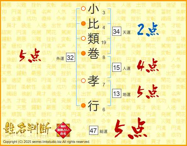 小(3画)比(4画)類(19画)巻(8画) 孝(7画)行(6画)