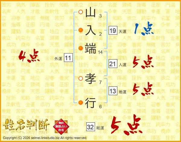 山入端孝行さんの総運は32画の5点!