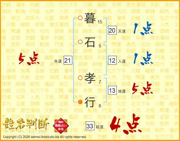 暮石孝行さんの総運は33画の4点!