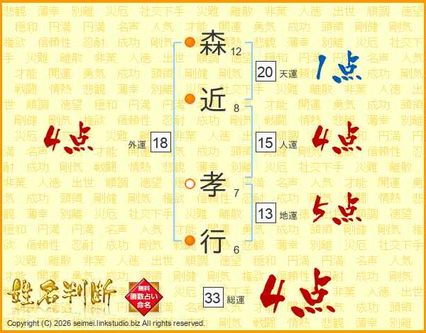 森近孝行さんの総運は33画の4点!