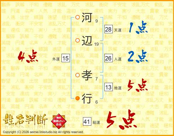 河辺孝行さんの総運は41画の5点!