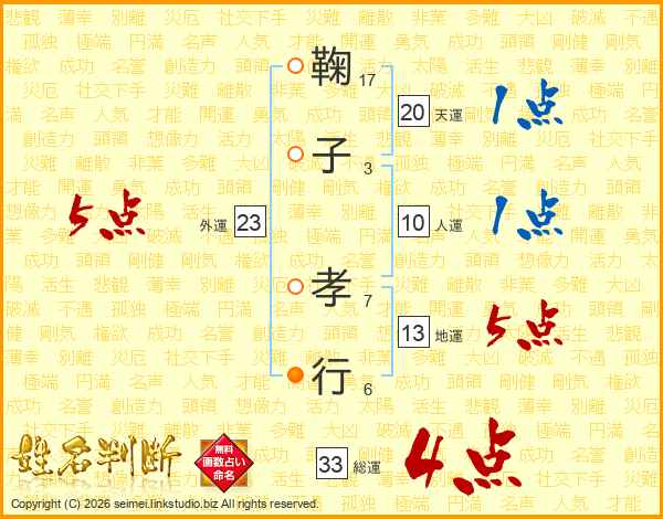 鞠(17画)子(3画) 孝(7画)行(6画)