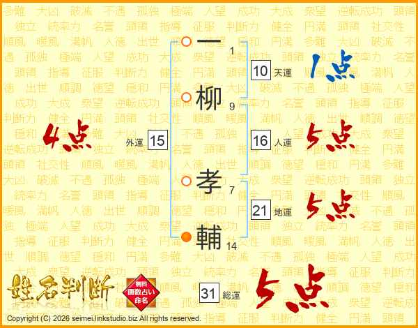 一柳孝輔さんの総運は31画の5点!