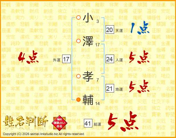 小(3画)澤(17画) 孝(7画)輔(14画)