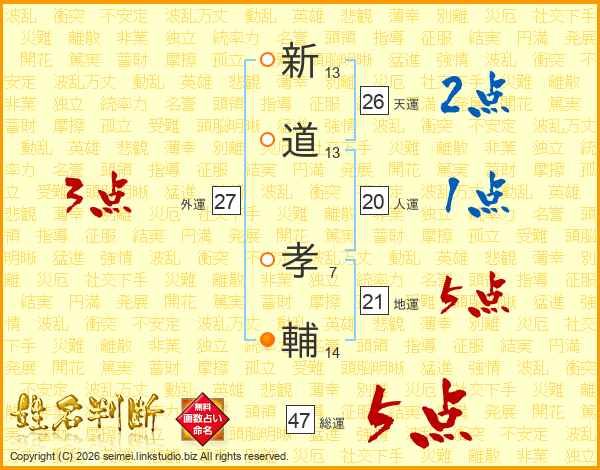 新道孝輔さんの総運は47画の5点!