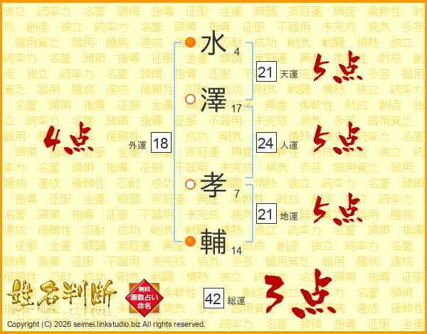 水澤孝輔さんの天運は21画の5点!