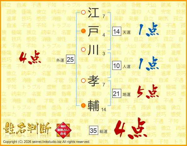 江戸川孝輔さんの総運は35画の4点!
