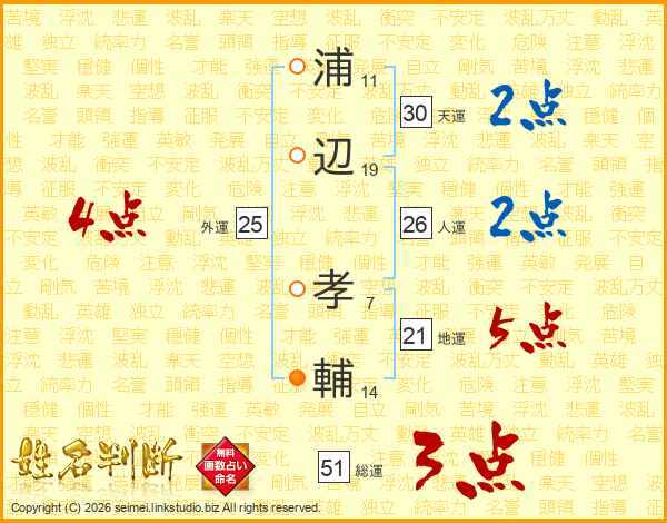 浦辺孝輔さんの天運は30画の2点!