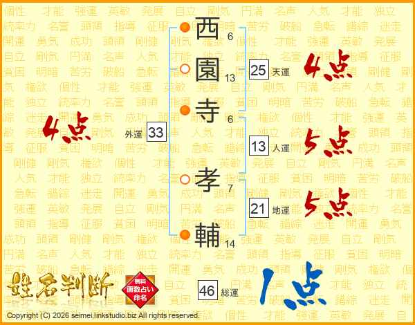 西園寺孝輔さんの外運は33画の4点!