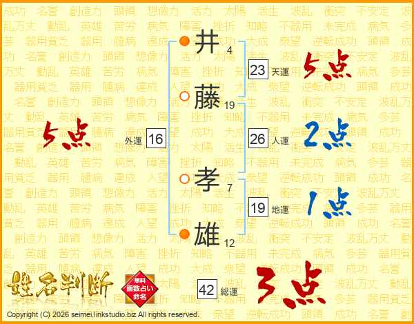 井(4画)藤(19画) 孝(7画)雄(12画)