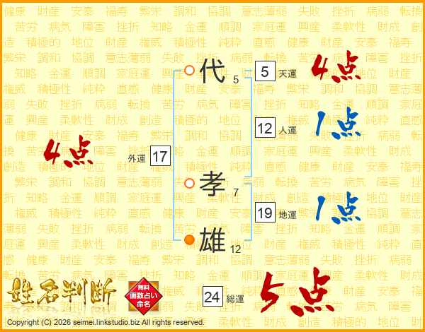 代孝雄さんの総運は24画の5点!