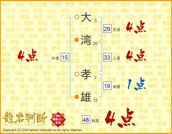 大湾孝雄さんの人運は33画の4点!
