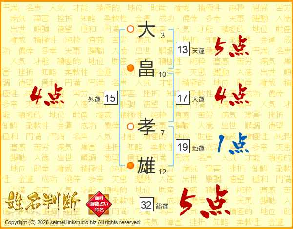 大畠孝雄さんの総運は32画の5点!