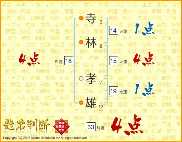 寺(6画)林(8画) 孝(7画)雄(12画)