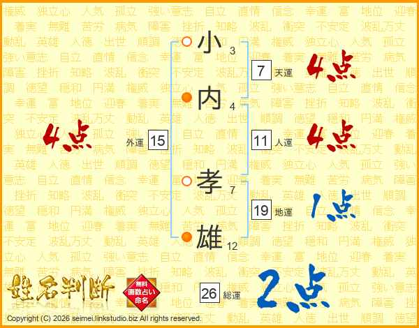 小内孝雄さんの人運は11画の4点!