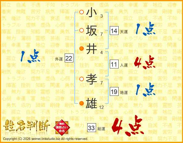 小坂井孝雄さんの総運は33画の4点!