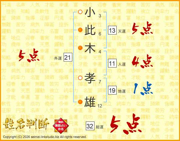 小此木孝雄さんの総運は32画の5点!