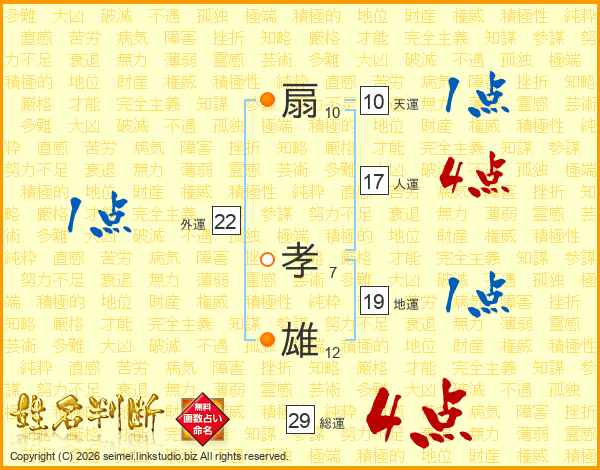 扇孝雄さんの総運は29画の4点!