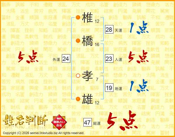 椎橋孝雄さんの総運は47画の5点!