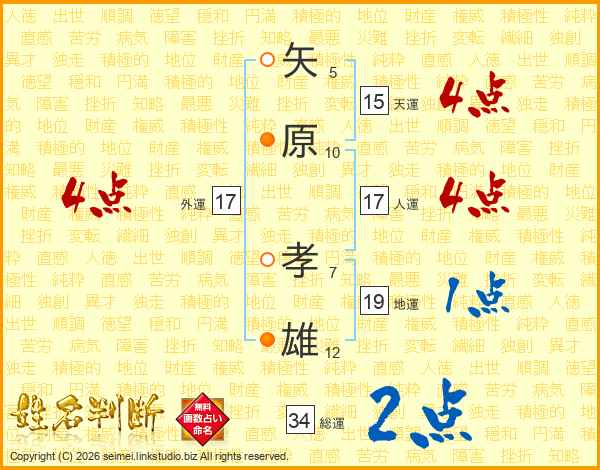 矢(5画)原(10画) 孝(7画)雄(12画)