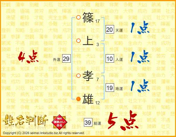 篠上孝雄さんの総運は39画の5点!