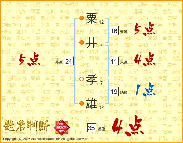 粟(12画)井(4画) 孝(7画)雄(12画)