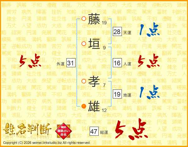 藤垣孝雄さんの総運は47画の5点!