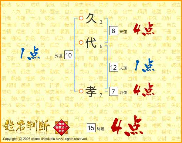 久(3画)代(5画) 孝(7画)