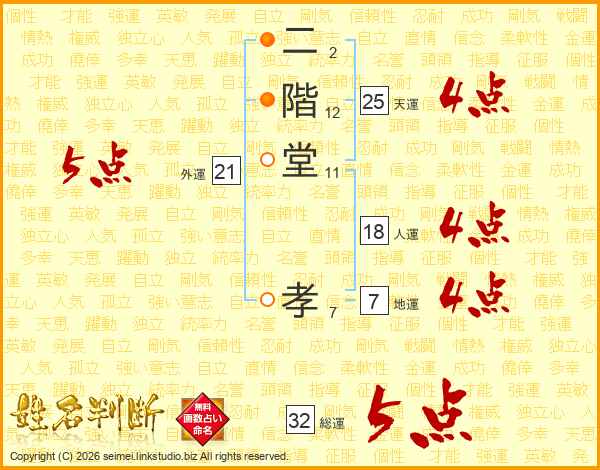 二階堂孝さんの総運は32画の5点!