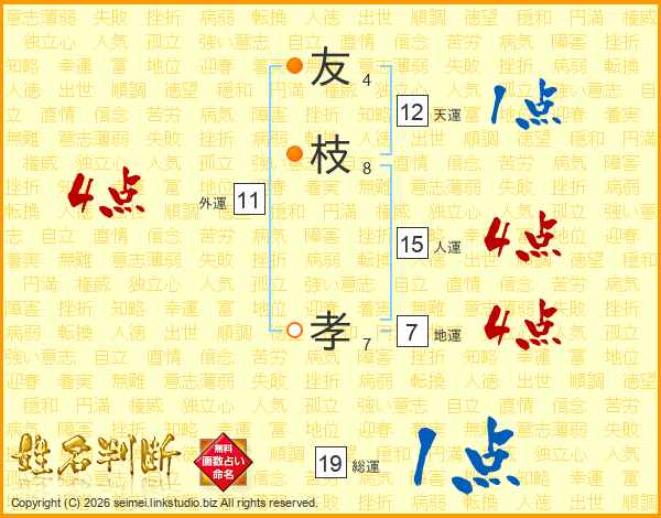 友枝孝さんの総運は19画の1点!