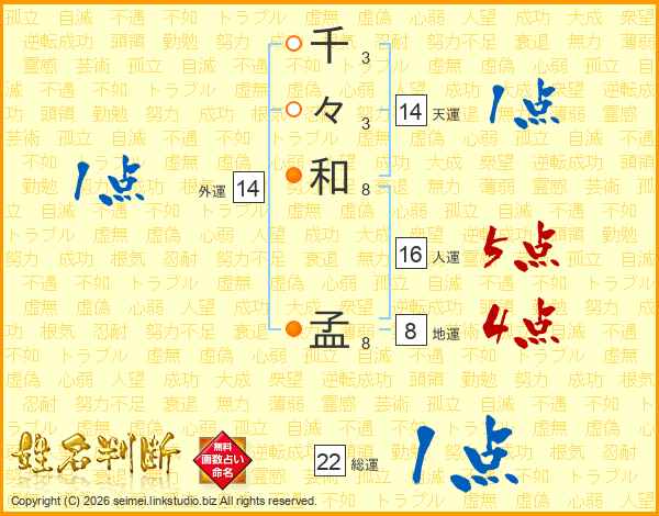 千々和孟さんの総運は22画の1点!