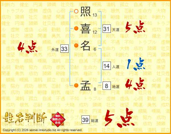 照喜名孟さんの総運は39画の5点!