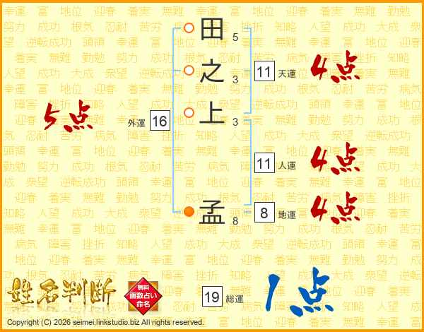 田之上孟さんの総運は19画の1点!