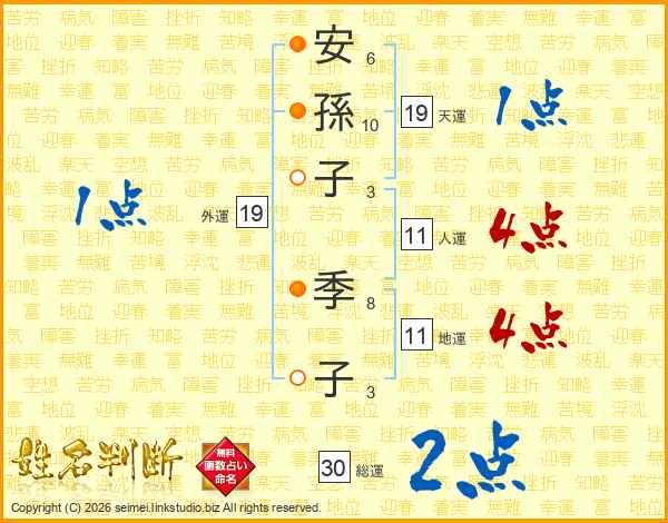 安(6画)孫(10画)子(3画) 季(8画)子(3画)