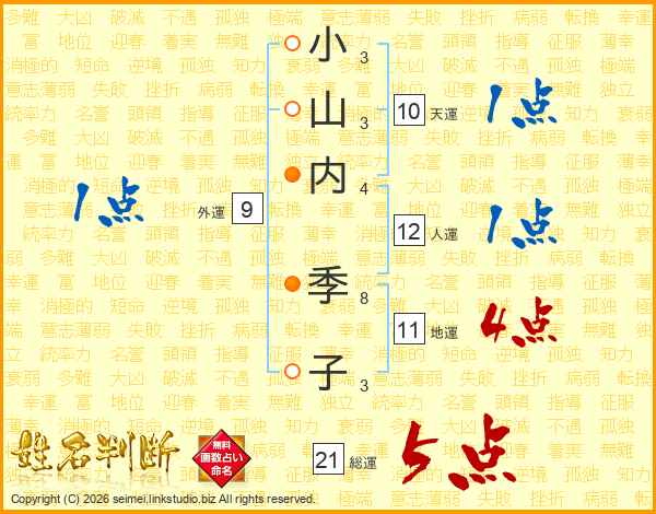 小山内季子さんの総運は21画の5点!