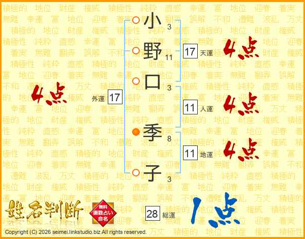 小野口季子さんの外運は17画の4点!