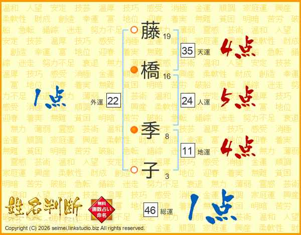 藤橋季子さんの総運は46画の1点!