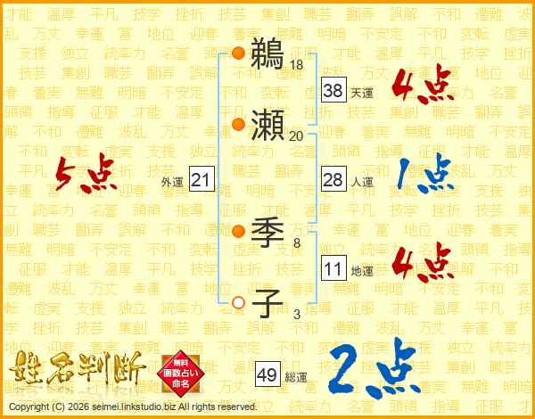 鵜瀬季子さんの総運は49画の2点!