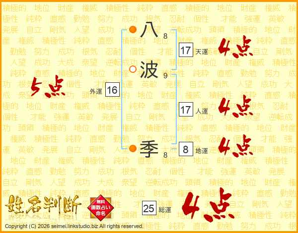 八波季さんの総運は25画の4点!