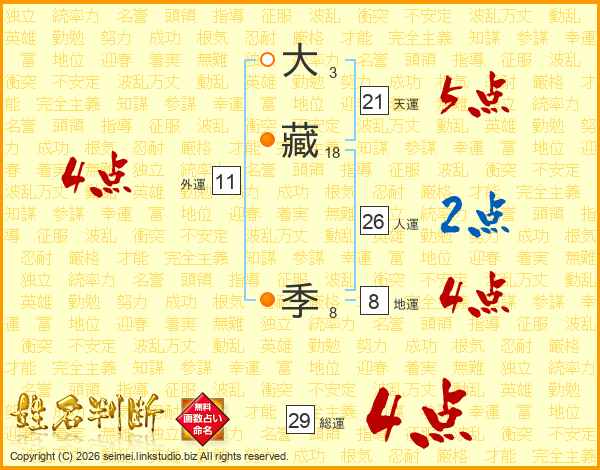 大藏季さんの総運は29画の4点!