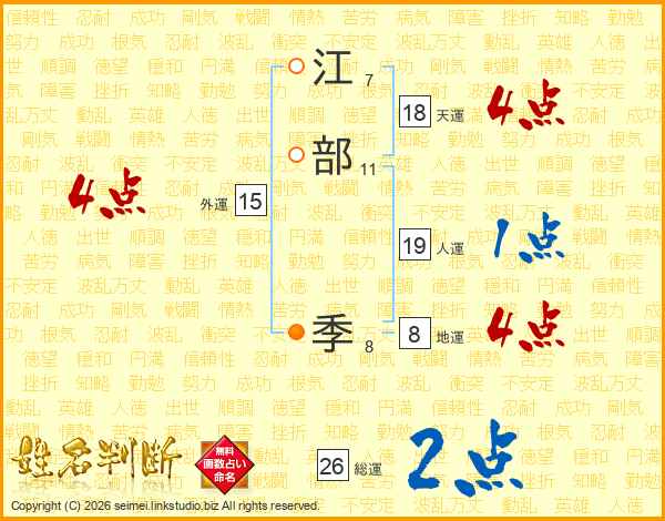江部季さんの総運は26画の2点!